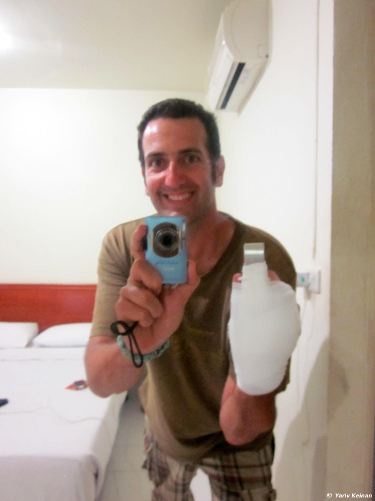 So now I am back in Thailand after a smooth border crossing this morning and a short ride to Chiang Rai. I like this town, it has a really nice vibe in the backpackers area. Once here I went on a different type of experience – the hospital experience. I tripped over some steps back in Vientiane over 2 weeks ago and hurt my ring figure. It wasn’t so bad but then I tripped again during the jungle track in Luang Nam Tha and it got a bit worse. Since there are no decent hospitals in the entire country of Laos anyway (not to mention the north) I decided to just make a ghetto splint from a popsicle stick and have it examined in Thailand. Mind you that it didn’t hurt much and I was able to easily ride a motorcycle for 2 days AND zip-line through the jungle safely, but it was better to have it looked at by a doctor. I thought I just tore or hurt a ligament but it turned out that I actually fractured the middle bone of my right ring finger.